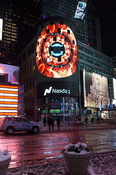 "Apollo XVIII," created by artist Marco Brambilla, weaves archival footage from real NASA missions with computer-generated imagery to form a countdown to a fictional flight to the moon. It will be shown on Times Square's electronic billboards from 11:57 p.m. to midnight each night in March as part of "Midnight Moment," a presentation by the Times Square Advertising Coalition and Times Square Arts.