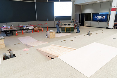 Space Center Houston update The restoration work continuesThe restoration of Historic Mission Control at NASA's Johnson Space Center is on track for completion in mid-June of 2019, well ahead of the celebration of the 50th Anniversary of the Apollo 11 Moon landing on July 20, 2019.  As you can see from these photos, the Mission Operations Control Room (MOCR) is missing its defining feature: the consoles that monitored the Apollo missions. One group of consoles were restored and reanimated at Cosmosphere in Hutchinson, Kansas last year. These were returned to Ellington Airport via the Super Guppy on November 8, 2018, and are now in storage. A second group being restored and reanimated at Cosmosphere is set to return in mid-May 2019. With the consoles out of the room, the restoration team can focus efforts on the outer shell of the Mission Operations Control Room (MOCR). For example, carpet has been completely removed from all the computer floor tiles and damaged tiles are being repaired. The new carpet has been received and is being stored until time for installation. The team is also focusing on electrical work and lighting, repairing damaged sheetrock, and preparing the walls for wallpaper.  The Visitors Viewing Room also looks vacant. As you can see in the photo above, the team has removed all seating for repair and restoration. Cushions inside the seats are being replaced, but the seating fabric itself requires nothing more than a deep cleaning. After more than 60 years of service to mission control, accommodating astronaut spouses and families, high level NASA officials and political dignitaries observing Apollo missions from the room, the original seating fabric will continue to accommodate visitors for years to come! The fully restored Mission Operations Control Room (MOCR) will be open for tours beginning on July 1, 2019. Stay tuned for more updates and information about the anniversary celebrations! |
