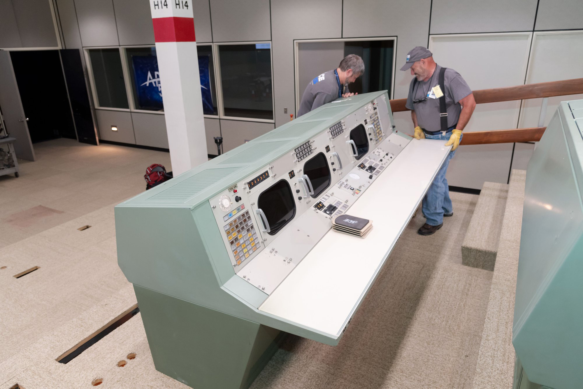 Johnson Space Center update The first few restored Apollo consoles were reinstalled in the Apollo Mission Control Center today (June 3). This is a huge milestone in the complete restoration of this historic landmark set to be complete by the 50th anniversary of Apollo 11 next month.
