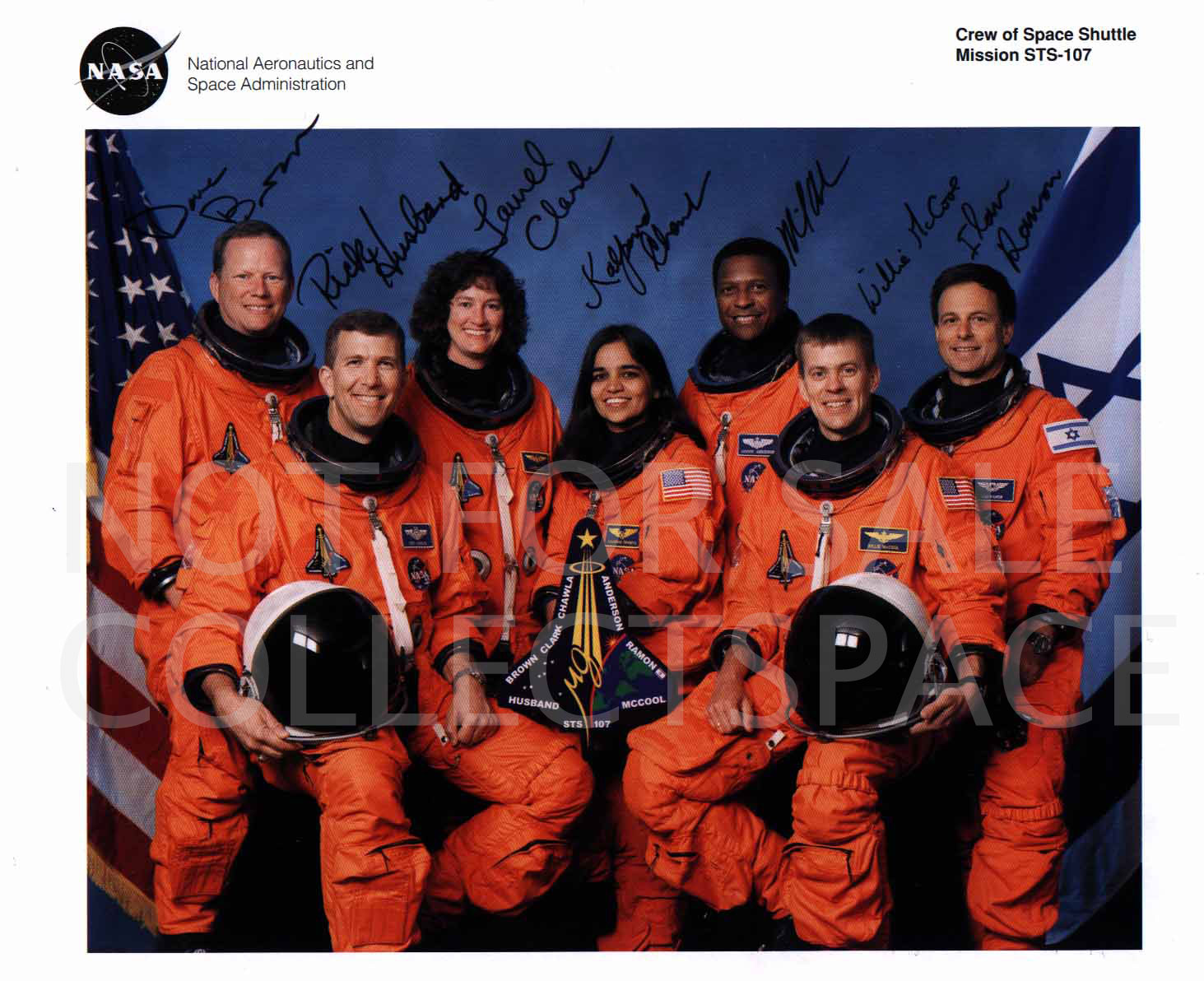 Two readers have provided scans of their STS-107 crew autographs for reference and reflection. Before anyone asks, these are not for sale under any circumstances (and I have taken the extra step of watermarking each so these do not appear as copies for sale on eBay).