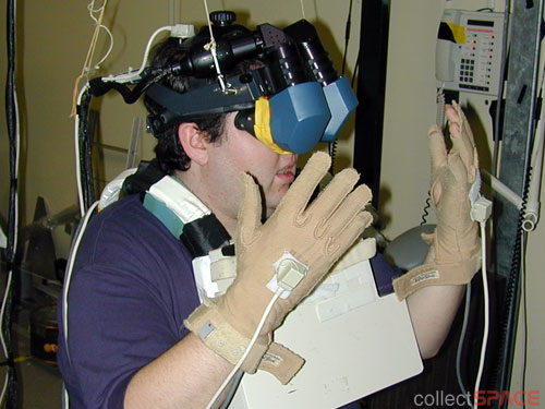 The VR lab is a popular stop for celebrities touring JSC, where they can briefly experience what it's like to spacewalk.This shot of Barbara Morgan has a slightly clearer and larger view of their autograph collection, where you can see the cast of the movie Space Cowboys — Clint Eastwood, Tommy Lee Jones, James Garner and Donald Sutherland — as well as actress Vanessa Lengies ("American Dreams"), actor Mandy Patinkin ("Criminal Minds"), and Miss USA 2001 Kandace Krueger (who is from Houston). |