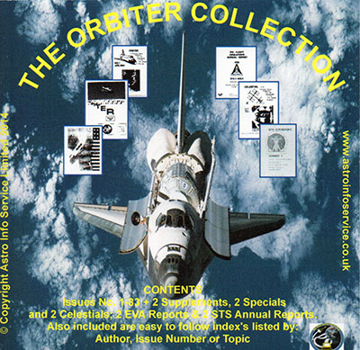 Following on from the popularity of our Zenit Collection released last year, Astro Info Service, Ltd. has released the complete Orbiter Collection on disc in PDF format. Orbiter was a privately produced periodical focusing upon the U.S. Space Shuttle and emerging Space Station Freedom programmes, and in the same format as Zenit. Each disc contains over 80 issues plus specials with full index covering the period 1984-1992. Only available from Astro Info Service Ltd.  |