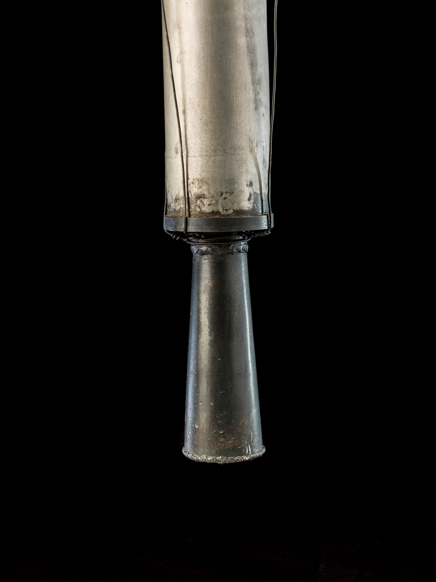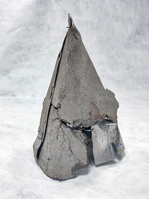 The conical cap that shielded the combustion chamber on the first liquid-fuel rocket as seen in 2026 in the Robert Goddard collection at the Roswell Museum and Arts Center. (Caroline Brooks/Roswell)
