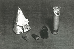 Fragments attributed as flying as part of the world's first liquid fuel rocket in the Robert Goddard collection at the Roswell Museum and Arts Center in New Mexico. (W.S. Crane/Roswell) |
