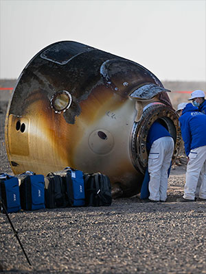 China's Shenzhou 21 descent module is seen after landing with the Shenzhou 20 crew in the Gobi desert on Nov. 14, 2025. (Xinhua)