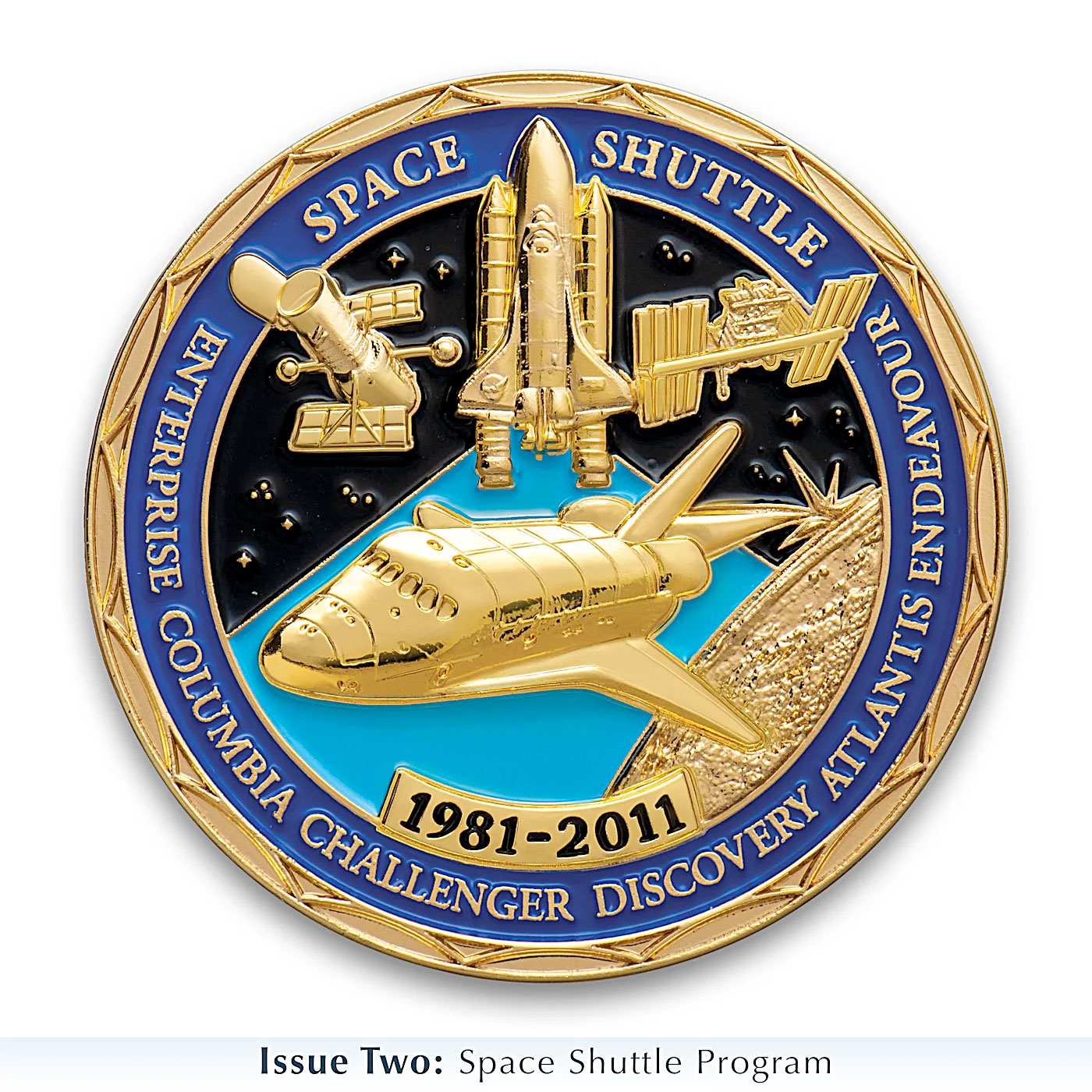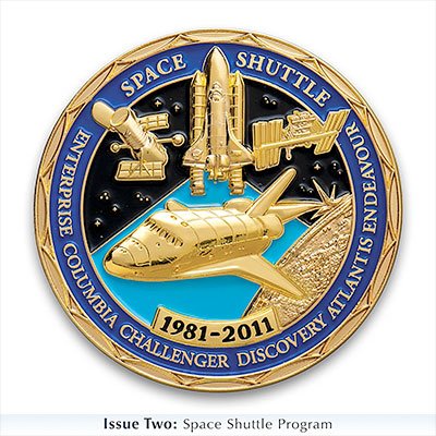 This collection begins with Issue One, The New Frontier, followed by Issue Two, Space Shuttle Program. Soon your collection will continue with Issue Three, your next challenge coin, followed by Issue Four, a Custom Display Case, and additional collectible American space race challenge coins, each a separate issue to follow.