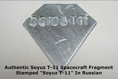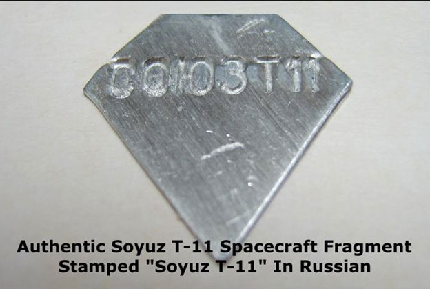 I remember that I used to have a piece of the Soyuz T-11 capsule, if I remember correctly. They were sold about 25 years ago, were pentagonal in shape, and were mounted on a four-page card that was about 3.5 by 5 in size. I remember the pieces came directly from Russia, as I kept it in the mailing envelope, and also if I remember correctly, were being sold for about $80 each. The cards also bore fascimile printed signatures of the crew. Anyone remember these and know how many were made? |