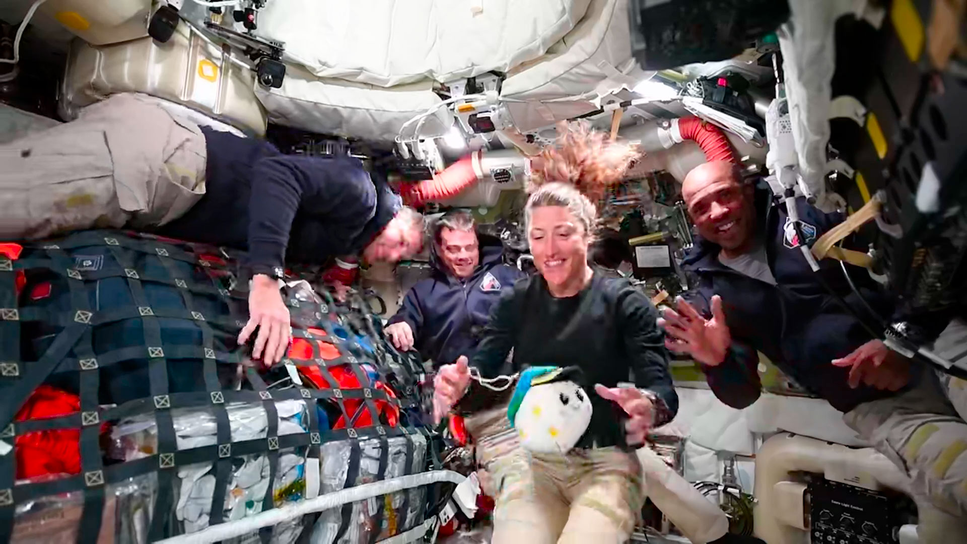 NASA astronauts Reid Wiseman, Victor Glover and Christina Koch, along with Jeremy Hansen of the Canadian Space Agency, on Friday (March 27) revealed the zero-g indicator (ZGI) that will launch with them on their 10-day flight. "Rise," a plush doll of a smiling moon wearing an Earth-adorned baseball cap, will begin to float when the crew reaches orbit, signaling a successful start to their journey.