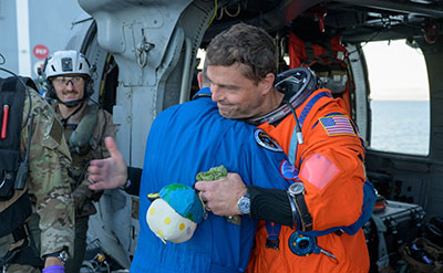 It has been very apparent that the entire crew has enjoyed having Rise as their fifth crewmate. I love the "selfie" photo of Christina and Rise seen through the capsule window, taken from one of the solar wing cameras. Reid has seemed particularly attached, carrying Rise with him seemingly from the moment he exited the capsule at sea. He even brought it on stage with him for the homecoming event at Ellington AFB, and held it for the closing group photo op.