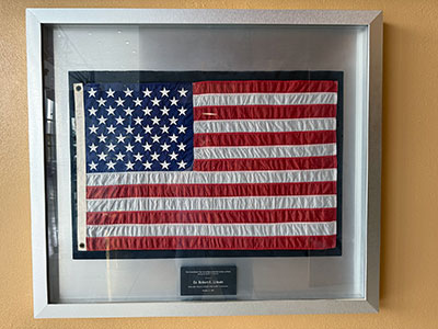 No, or least not the last part... here is that same flag today on display in the lobby of the Teague Auditorium at Johnson Space Center.