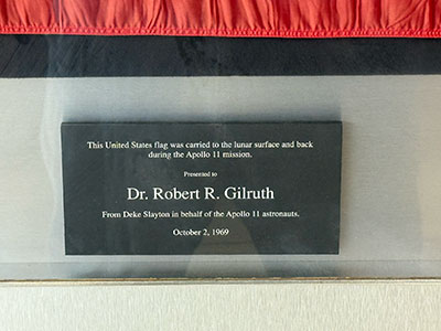 The flag is in MOCR-2, now known as the Historic Apollo Mission Control Room. MOCR-1 became FCR-1 for the space shuttle program and is today the primary International Space Station control room. |