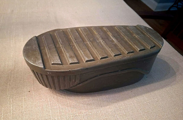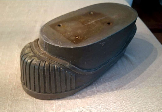 Something was brought to my attention over the weekend that I thought members would appreciate seeing.  Some years ago, a mould used to make the silicone soul on the Apollo EVA boots was snapped up by a collector who then went on to make a very nice limited edition presentation piece making use of that mould. Well this is the cast used to make the original mould. Made from a composite called "Repro" by ILC model makers and weighing approximately 8 pounds, this cast formed the mould from which Neil Armstrong's boot, and most of the remaining moonwalkers' boots, were made. Cool and historic in equal measure.