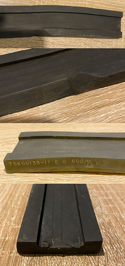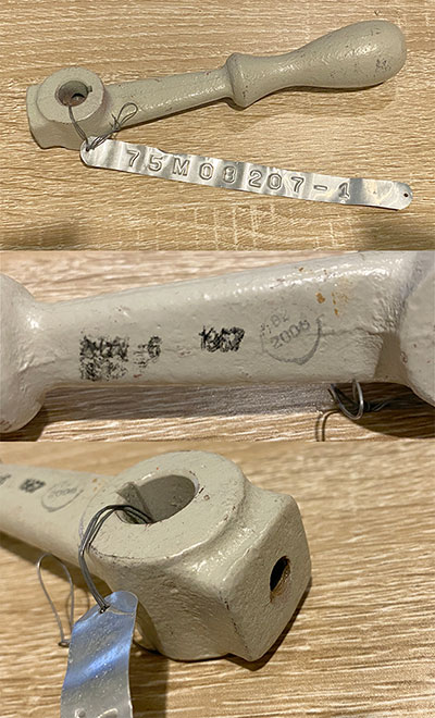Recently received this piece and was wondering if anyone has any idea what it would have been used for. It is made of rubber and measures 28" x 2 1/8" x 1/2". One side is beveled 16" in the center. The markings are: 76K00138-17 E O 600 / June 12, 1969. The icon has A32.The gray handle measures 6 3/4" long x 1" wide. The markings are Nov 6, 1967. Circle icon has: B2 2006. The tag has the number: 75M08207-1. I am assuming both pieces are ground support but am not sure. Any help would be greatly appreciated and thank you in advance.