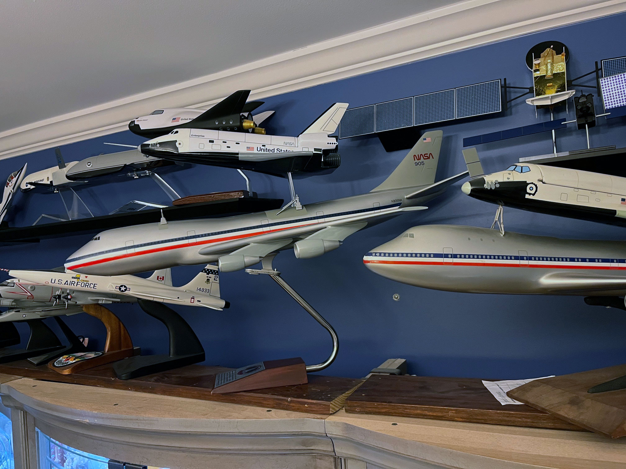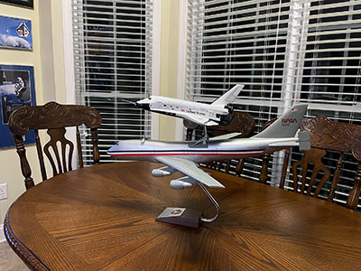 I think what really sells the new model is that nose down pitch attitude of the Shuttle Carrier Aircraft. An equally-skilled but less-informed model maker might only mount Enterprise pitching up while keeping the 747 level. It really shows Michael's understanding of the subject and makes the whole display feel that much more realistic.