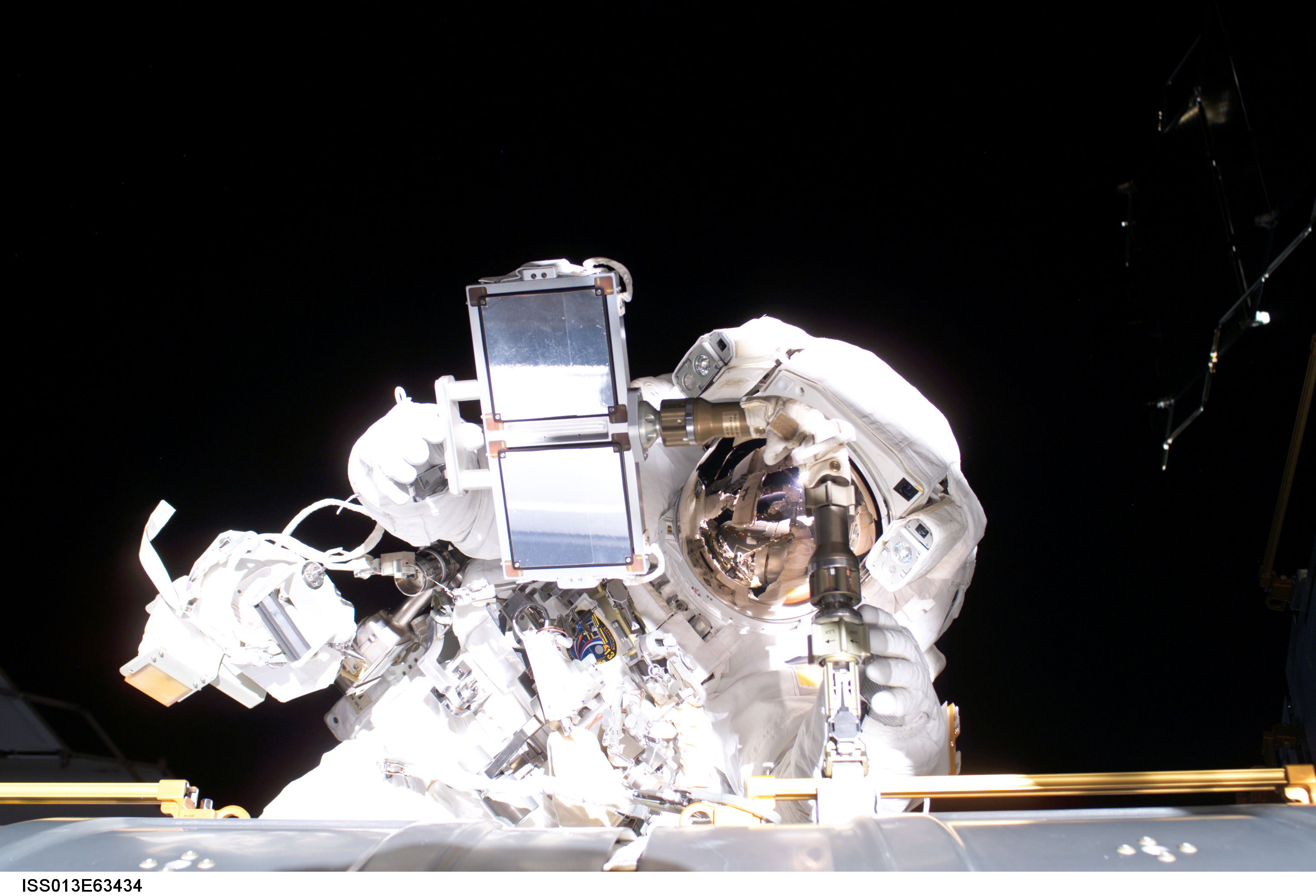 I'm assuming that NASA saw the red outlined and blue outlined ISS-13 patches and told Vinogradov and Williams they could only go with one. |
