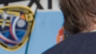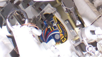 Jeff Williams has now been seen wearing a yellow/gold Expedition 13 patch. So he is not wearing the blue bordered Panchenko patch. Now is he wearing an AB Emblem patch? |