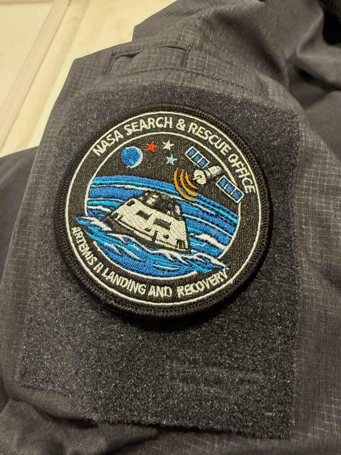 Seen online a patch representing the Navy Aircrewmen from a NASA recovery team member who recently helped track the Crew Module Training Article in an activity with the Artemis II crew. |