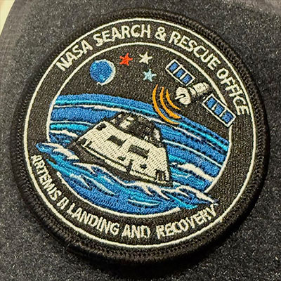 Artemis II landing and recovery patch from NASA's Search and Rescue Office: |
