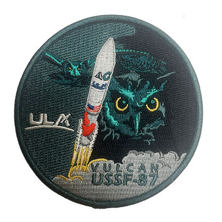 Here is the ULA patch for the USSF-87 mission, the next Vulcan launch. The embroidered patch is available from the ULA shop.