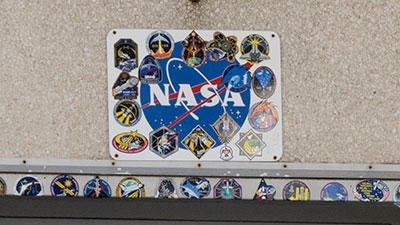 - The STS-105 patch was first applied to the bottom left corner of the original NASA sign. A replacement was applied below the STS-117 patch prior to SpX-DM2.