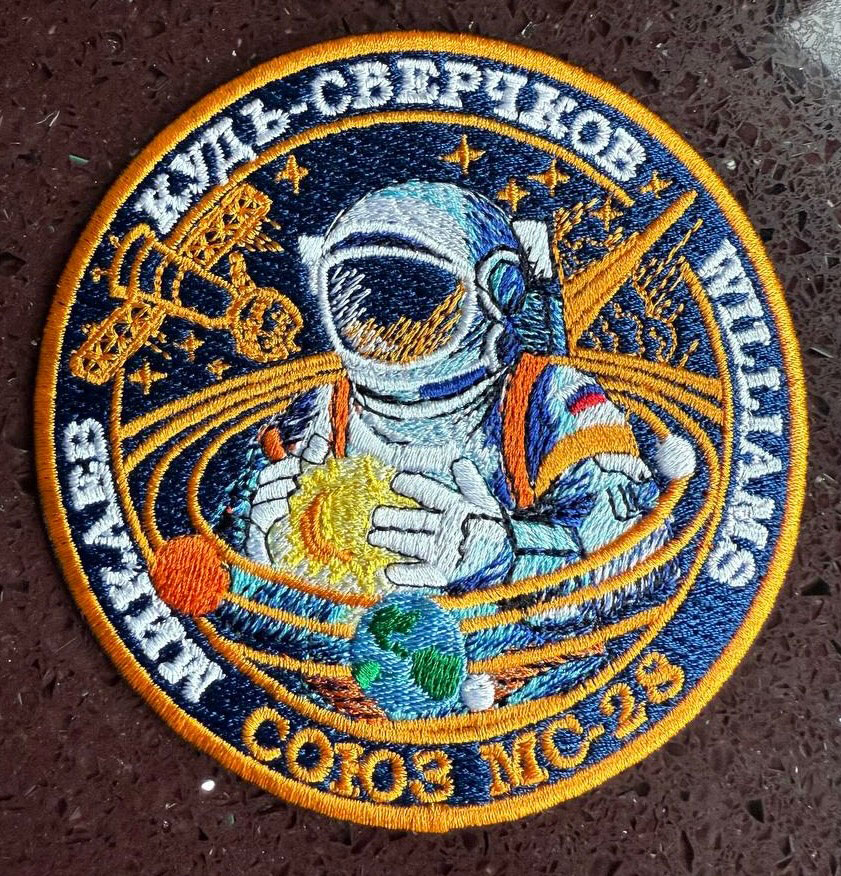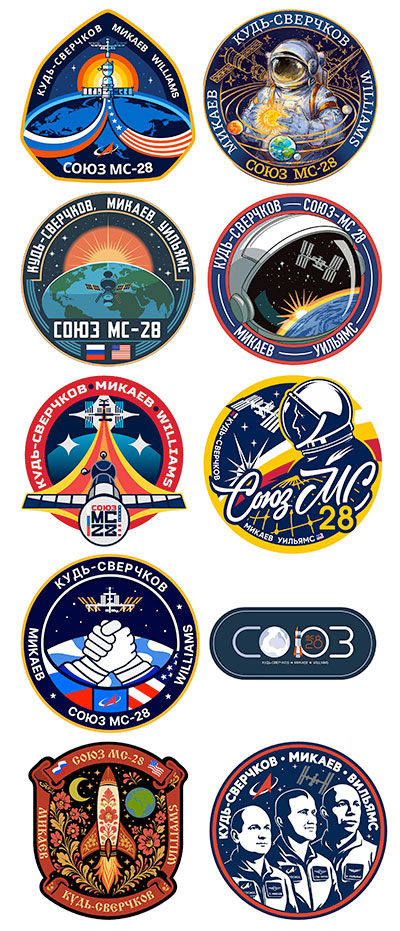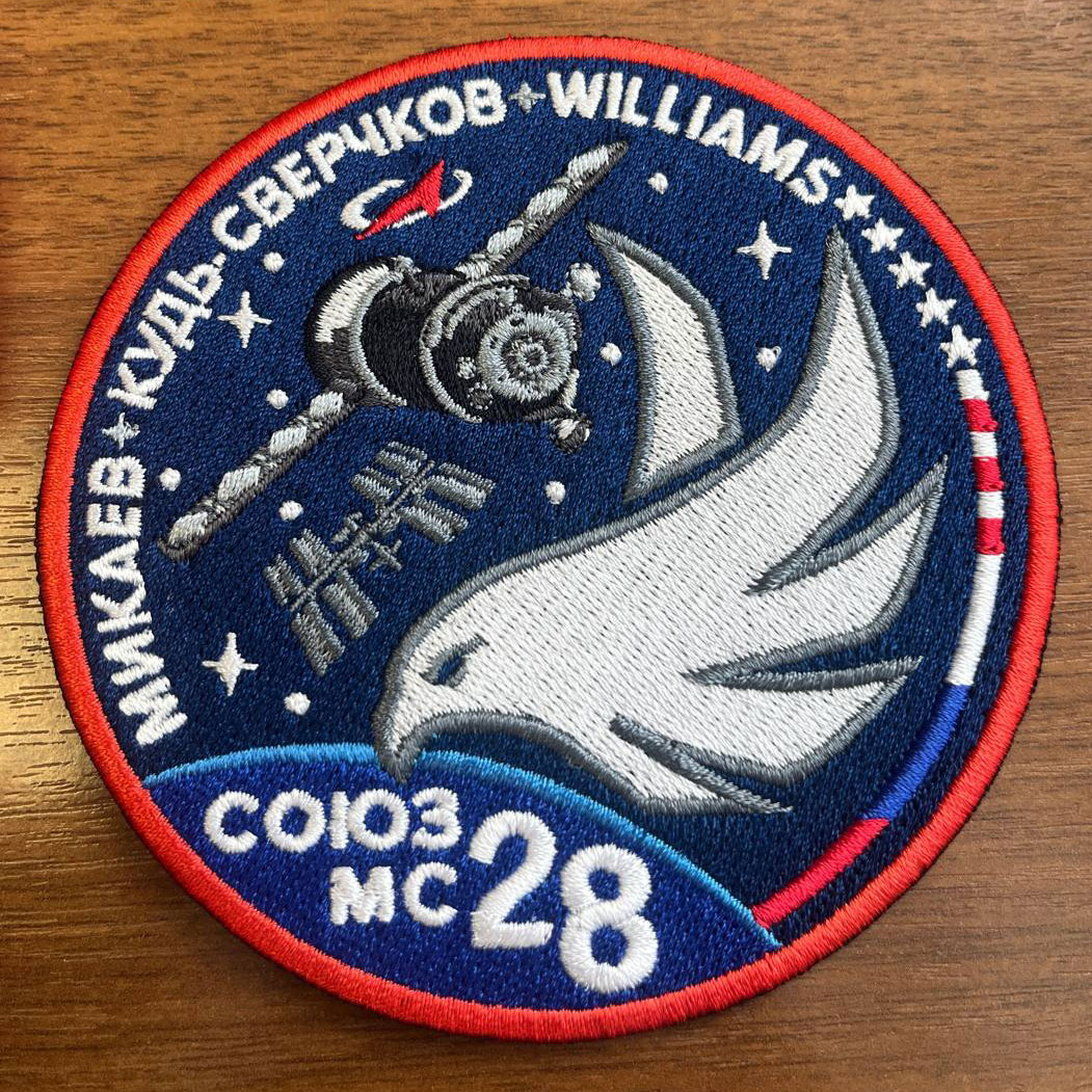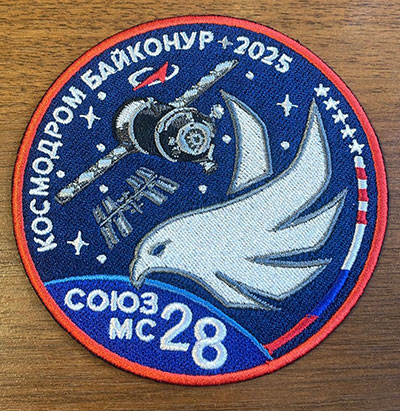 From Sergey Kud-Sverchkov on Instagram. Our crew's first patches finally arrived! For those interested in the insignia, I've included a description below. The description is the formal part of any emblem; it's essential. Therefore, the language of the description is very formal. So: The emblem of the Soyuz MS-28 spacecraft crew is a circle, the depth of which is emphasized by the dark blue color, symbolizing the boundless expanse of space.At the top of the emblem are the names of the crew members. Below, the Roscosmos logo proudly appears. Below the logo is the silhouette of the Russian Soyuz spacecraft, and next to it is an image of the International Space Station (ISS), a shimmering pearl in orbit, the spacecraft's destination. The right side of the emblem is occupied by a stylized gyrfalcon, a symbol of strength and speed, and the crew's call sign. To the right of the gyrfalcon, along the edge of the emblem, are the flags of the countries participating in the flight, denoting international cooperation in space exploration. Stars are scattered on a blue background, the three brightest of which stand out, symbolizing the three crew members of the spacecraft. At the bottom left, beneath the gaze of the gyrfalcon, the outline of the Earth appears, surrounded by a thin blue band of atmosphere, reminiscent of home. Against the background of the Earth are the name and serial number of the spacecraft: Soyuz MS-28. The emblem was designed by artist and designer Alima Feyzulina. |