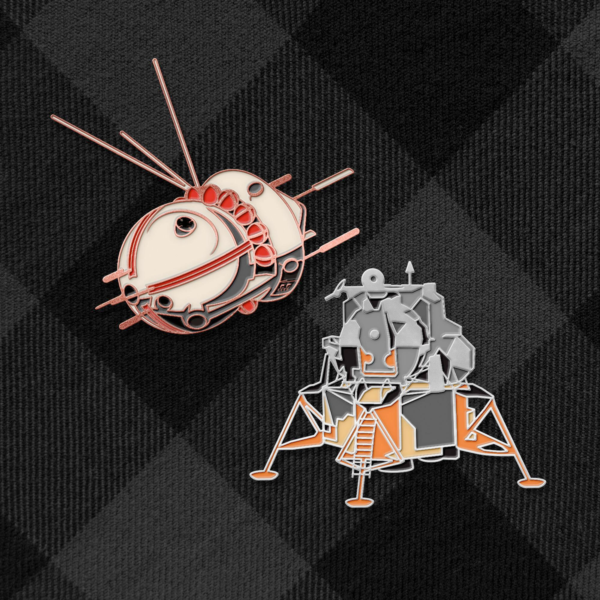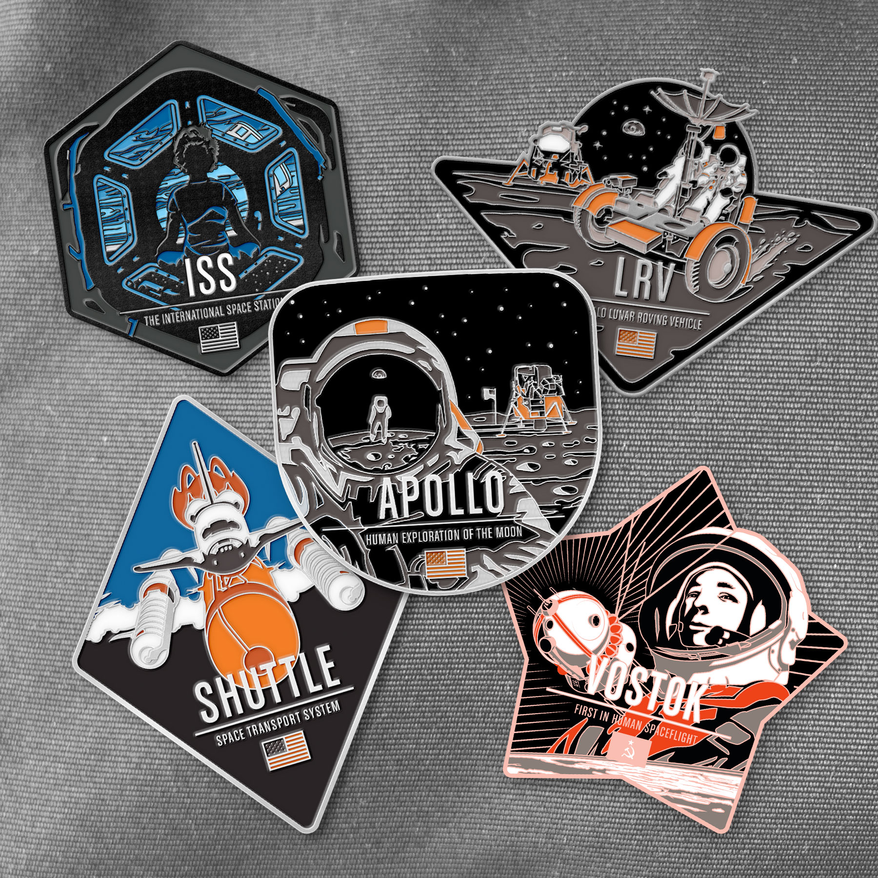 Chop Shop Studio release Giant Leaps: Our Human Spaceflight Pin Series Is HerePre-order the full set with our special one-page store.  Our new pin series celebrates the missions that actually got humans into space: Vostok, Apollo, and the International Space Station (ISS). Like our spacecraft series, each pin runs about 2" with a double rubber clasp backing — this time we're varying the metal colors to match each mission's aesthetic. That's not all... The series goes beyond Apollo, ISS, and Vostok. We've added two new designs—the Space Shuttle and Apollo's Lunar Roving Vehicle (LRV). Plus, hitting our stretch goals unlocked two vehicle-only pins: the Apollo Lunar Excursion Module (LEM) and Yuri Gagarin's Vostok 1 capsule.  | |