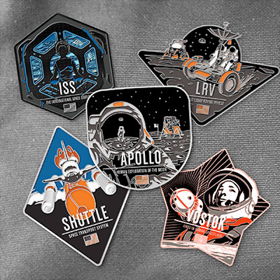 collectSPACE New 'Great Leaps in Space' enamel pins celebrate astronaut missionsAs it turns out, "Giant Leaps in Space" are more popular than "Historic Robotic Spacecraft," at least when it comes to the sale of collectible pins. Chop Shop Studio, a Pennsylvania-based design firm that focuses on space and science, has kicked off a crowdfund to produce a series of pins "celebrating the most important missions in human spaceflight history." Launched on BackerKit on Aug. 11, the Vostok, Apollo and International Space Station-focused campaign has already surpassed $6,000 from more than 130 people with two weeks more to go.  |