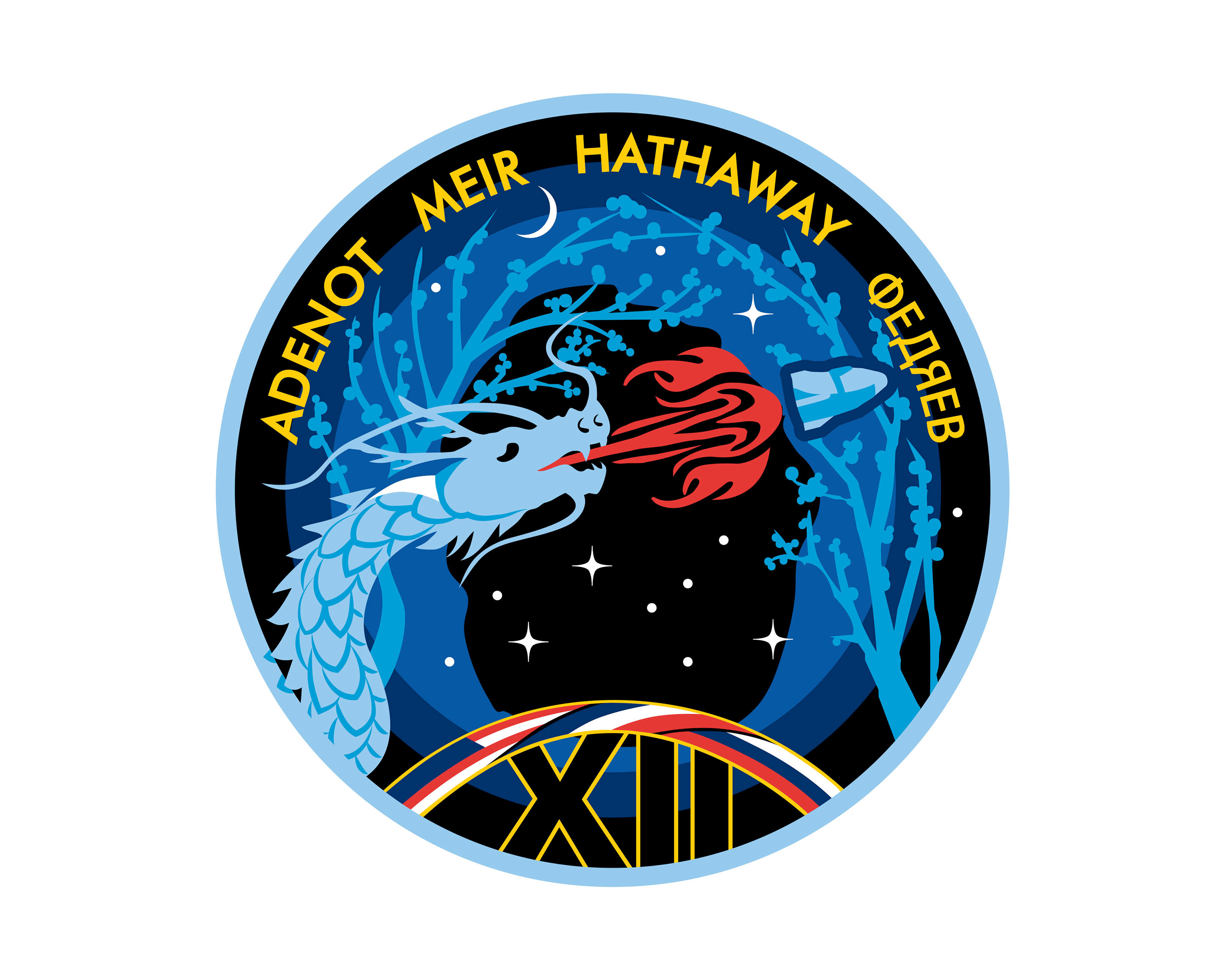 The official mission insignia for NASA's SpaceX Crew-12 mission to the International Space Station with NASA astronauts Jessica Meir and Jack Hathaway, ESA (European Space Agency) astronaut Sophie Adenot, and Roscosmos cosmonaut Andrey Fedyaev.