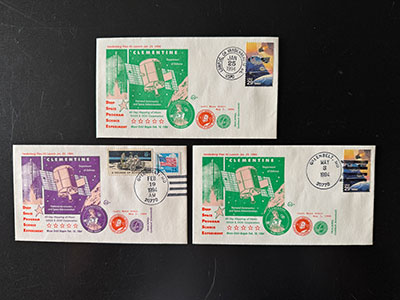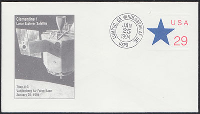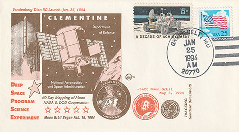 Space Cover of the Week, Week 826 (October 5, 2025) Space Cover 826: ClementineBack in Space Cover of the Week 732, Ray talked about the 1998-99 Lunar Prospector mission and how it verified the Clementine probe's 1994 finding of water on the moon. So, what was Clementine? Let's try to fill that gap. Above is a cover postmarked at NASA Goddard on January 25, 1994, for the launch of Clementine (also known as the Deep Space Program Science Experiment). Goddard-managed tracking stations provided communications and tracking for Clementine while in Earth orbit, and two Goddard scientists served as advisors on Clementine's science investigations. The Clementine moon probe was a joint effort between the Department of Defense (Ballistic Missile Defense Organization - BMDO) and NASA. The primary objective of the mission was to test new equipment that BMDO hoped to use in detecting hostile missiles launched against the United States. It just so happened that the radiation environment in deep space provided a more stringent test environment than Earth orbit, and the sensors being tested could do some great scientific investigation of the Moon, hence NASA being involved. Launched from Vandenberg AFB onboard an excessed Titan II ICBM, Clementine reached lunar orbit on February 19, 1994, the first probe to the Moon in over 20 years. Clementine produced the first complete map of the Moon including the Moon's poles (prior efforts to map the Moon concentrated on Apollo landing sites that were closer to the Moon's equator). In addition to photo coverage, detailed elevations of lunar surface features were measured for the first time. And as noted before, some innovative use of the radar on Clementine indicated that water may have been present in the permanently shaded portions of a lunar polar crater. And water was the "Holy Grail" that would drive future lunar exploration (Think about why today's lunar return efforts are focusing on the South Pole of the Moon – water!). So, Clementine was a fundamental precursor to today's push to return to the Moon! And Clementine did all of that in just over two months of orbiting the Moon! On May 3, 1994, Clementine's engine was fired to propel it out of lunar orbit and toward Asteroid 1620 Geographos to do even more science. Unfortunately, an anomaly occurred several days later that ended the mission before it could reach the asteroid. Today, the engineering model of Clementine resides at the Smithsonian National Air and Space Museum, reflecting the major contribution of Clementine to lunar exploration. You are probably wondering why I've highlighted a cover postmarked at NASA Goddard, who had limited involvement in Clementine, as a Space Cover of the Week. And not a cover postmarked at the Vandenberg AFB launch site; or near the Clementine mission control center in a warehouse in Alexandria, VA; or a Deep Space Network site that provided communications and tracking at lunar distances. Good question! And the answer is simple – this is the only Clementine cover that I have been able to find! Clementine was a pretty low-key project back in the mid-'90's and didn't seem to attract the attention of many cover servicers back then. Do any of you have other Clementine covers? Please post 'em!!! |