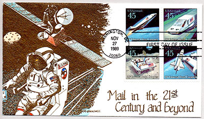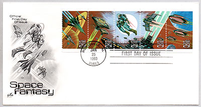 Other U.S. stamps depict a future in space that back in the 1960's seemed like foregone conclusions especially to young children. A set of five Space Fantasy stamps displays in all it's sci-fi glory what our future will be.