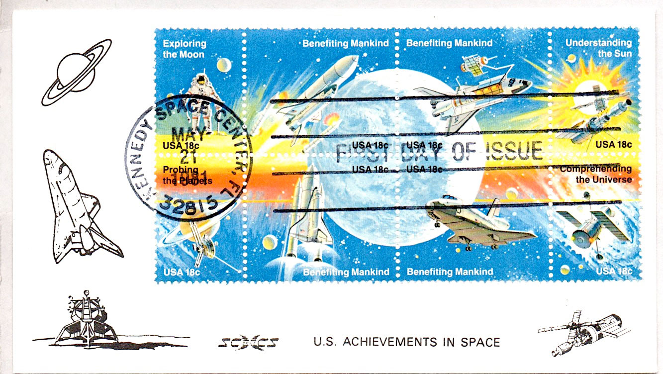 The United States Postal Service has issued many space-related postage stamps celebrating U.S. space accomplishments.