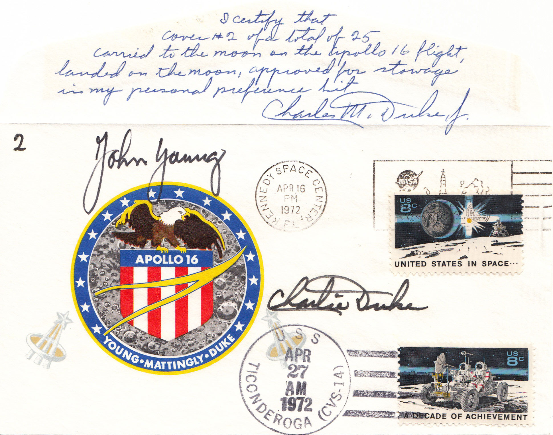 Very nice indeed Walter and to have Young and Mattingly finally sign much afterwards, I know, was a lot of effort. I also like that Duke's flown Bishop moon covers, like with Sieger's LM-flown lunar surface covers, were both remarkably posted for KSC-launch and onboard recovery ships. It's too bad the same couldn't be said for the Apollo 11 moon covers, but nevertheless, I am still quite happy with their creation as they came out.