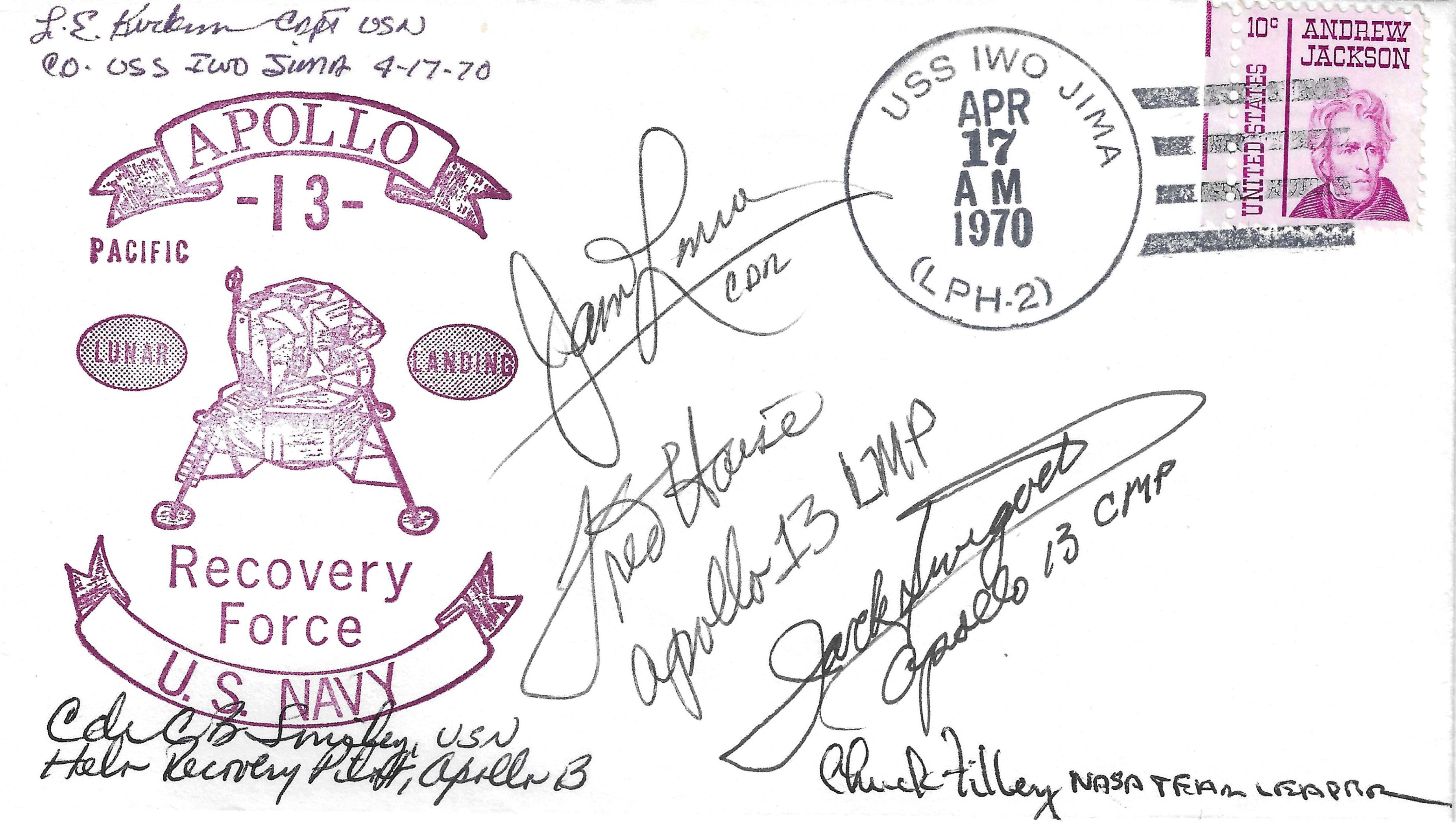 Great subject Bob. The first cover is an Apollo 12 Captain's covers signed by the Apollo 12 crew and the Captain of the USS Hornet. The second cover is an Apollo 11 beck cover signed by the helo crew members. Last but not least is a Beck USS Iwo Jima cover signed by the helo crew members. Some of my favorite covers.