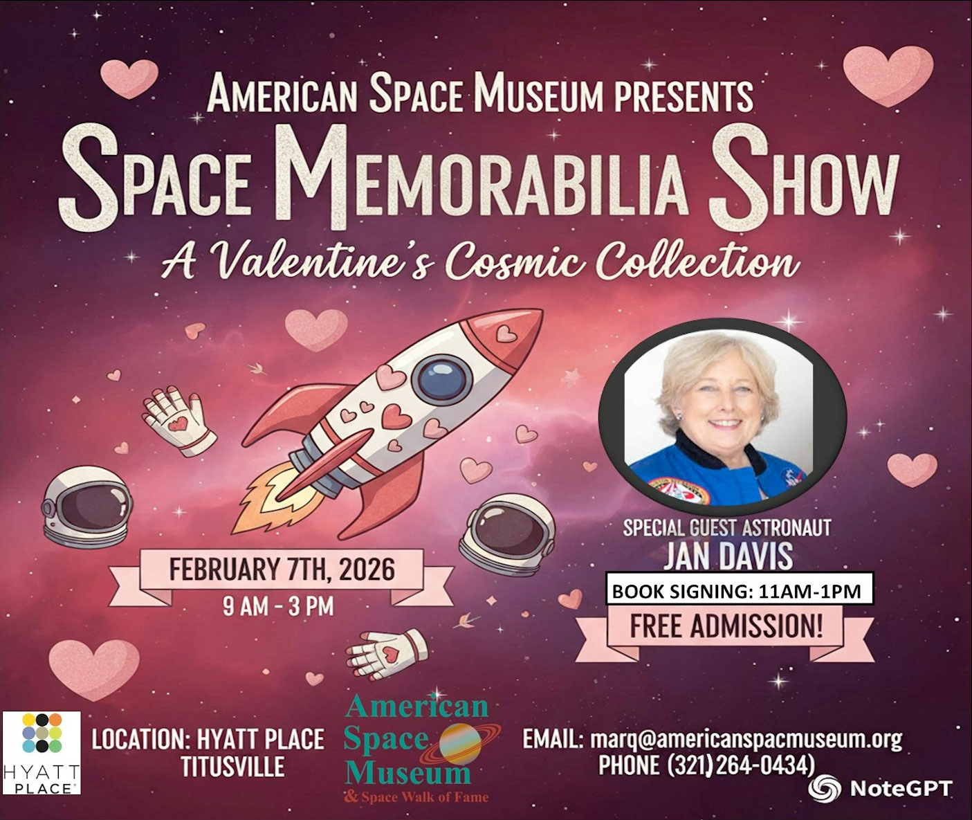 Find your "perfect match" and buy a book autographed by an astronaut as the American Space Museum has their Winter Memorabilia Show on Saturday, Feb. 7, 2026 from 9 a.m. to 3 p.m. at Hyatt Place Titusville in Florida.