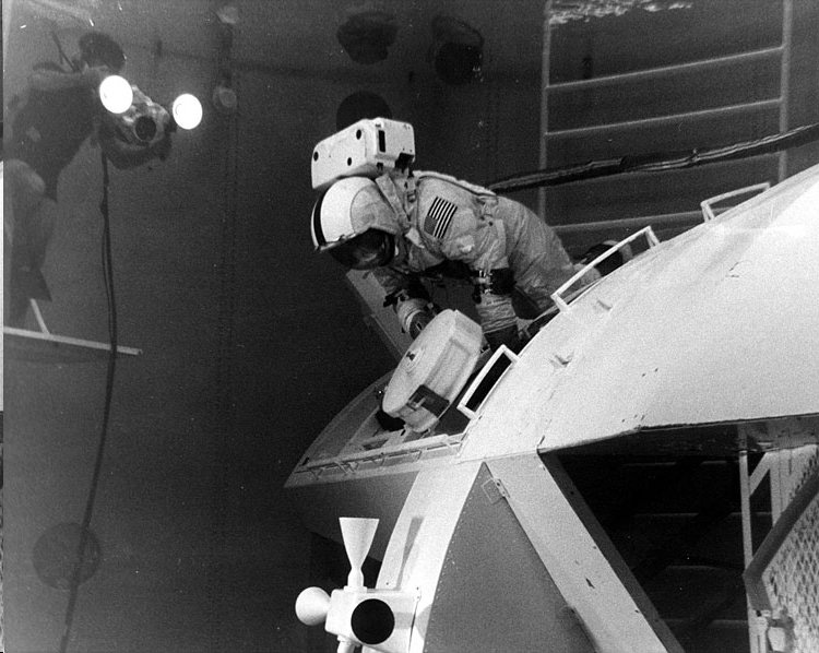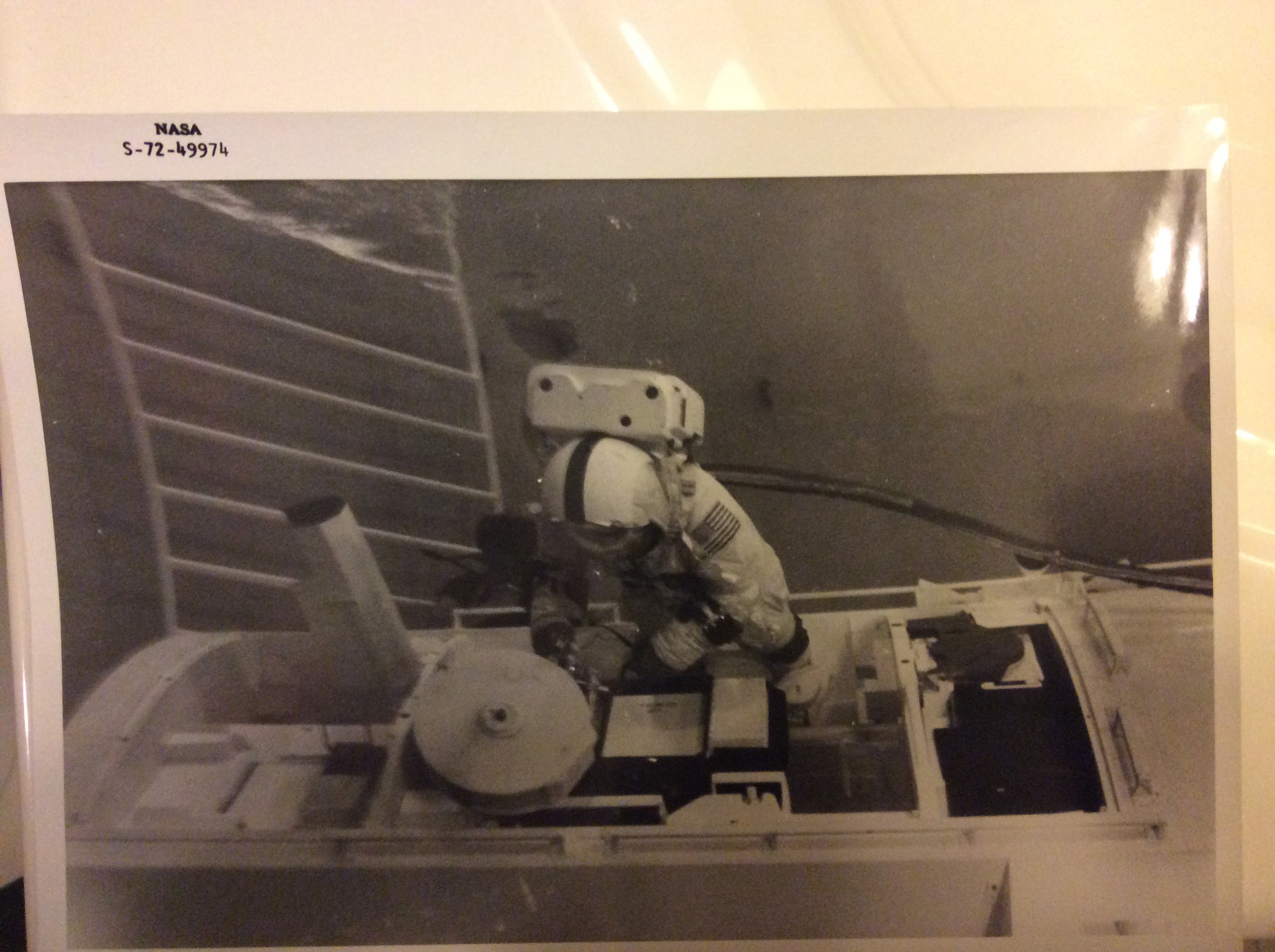 The photo number is a little off but I suspect this is Ron Evans on an EVA simulation Oct. 3, 1972. AP17-72-H-1334 is a similar shot that I suspect was taken on the same simulation.