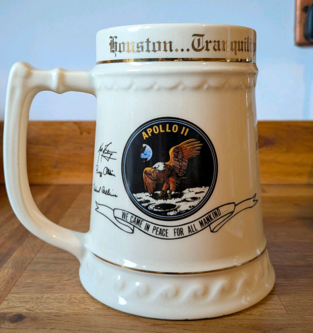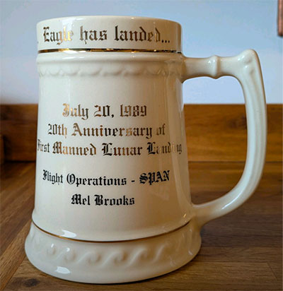 The Apollo flight controllers have for decades held annual reunions around the anniversary of the Apollo 11 mission. I do not know for certain, but as this mug (stein) was created for the 20th anniversary, it stands a good chance of being the souvenir from that year's reunion.