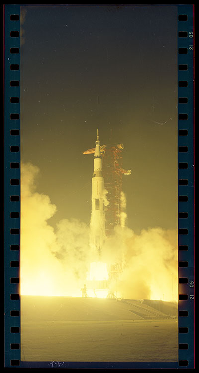 It looks like the Apollo 17 launch may have been filmed in 65mm, based on the size of this frame. Photo number is KSC-72PC-598. The TIFF image of the frame is massive (675MB).  |