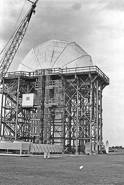 I think this is the boresight facility in the KSC industrial area. I've not seen it with the protective cover before. Here's a report (PDF) about the facility with a few illustrations toward the end. |