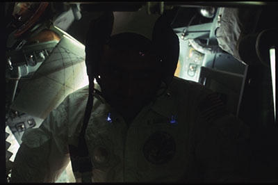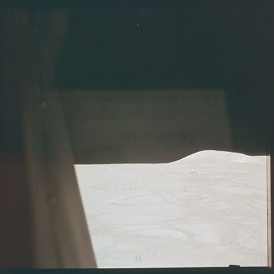 I also think the CSM would have been pointing in a downward direction during the flyover. I just don't know what the altitude would have been.My first impression of the object was that, if it was the CSM, it was pointing downward with the small blue spot on top lighting a bit of the engine nozzle. If the object is just an artifact or flaw in the photo, it is quite a coincidence that a flaw that looks somewhat like the CSM would show up in that photo at about the same location as the real CSM would have been. |