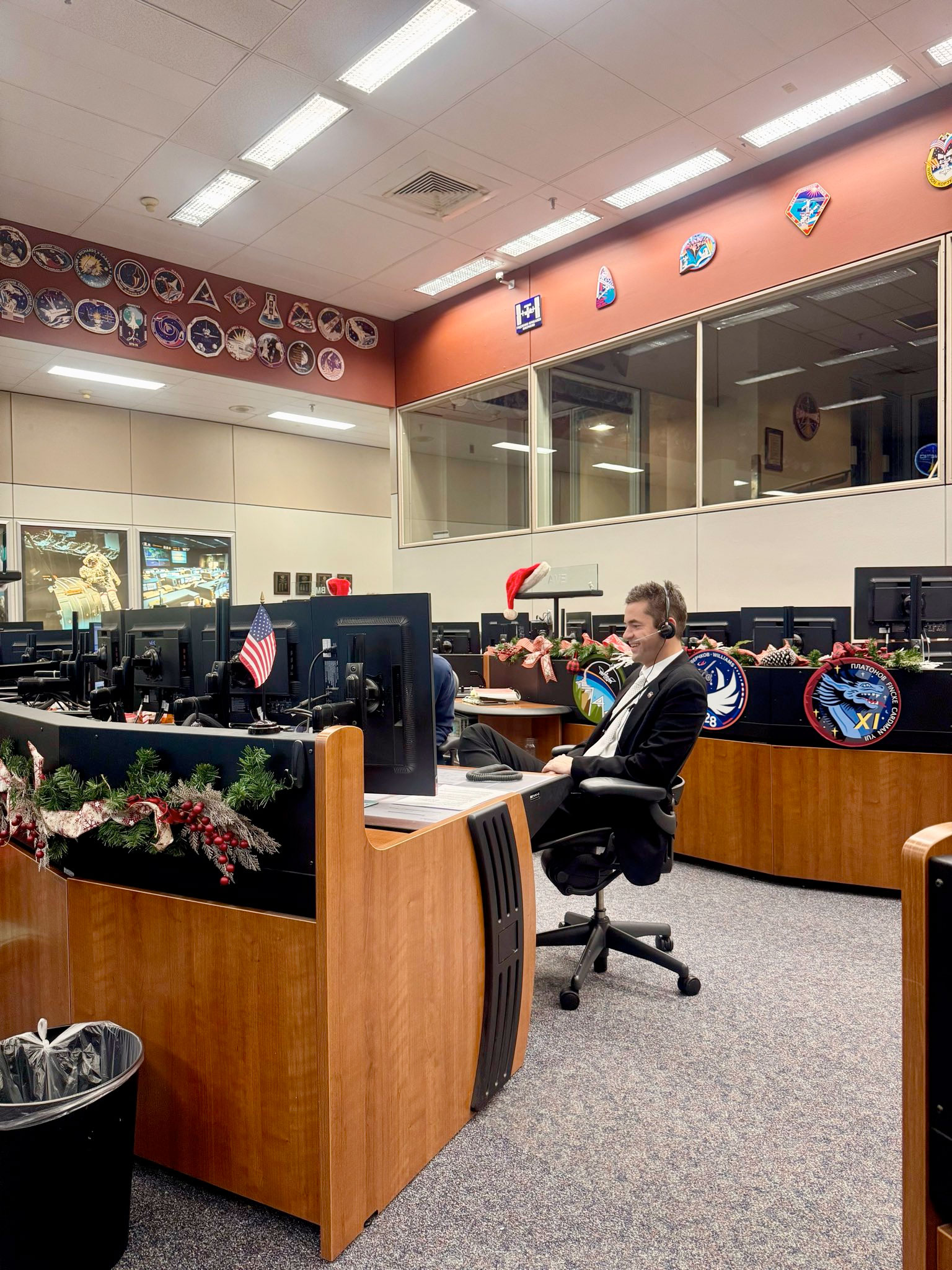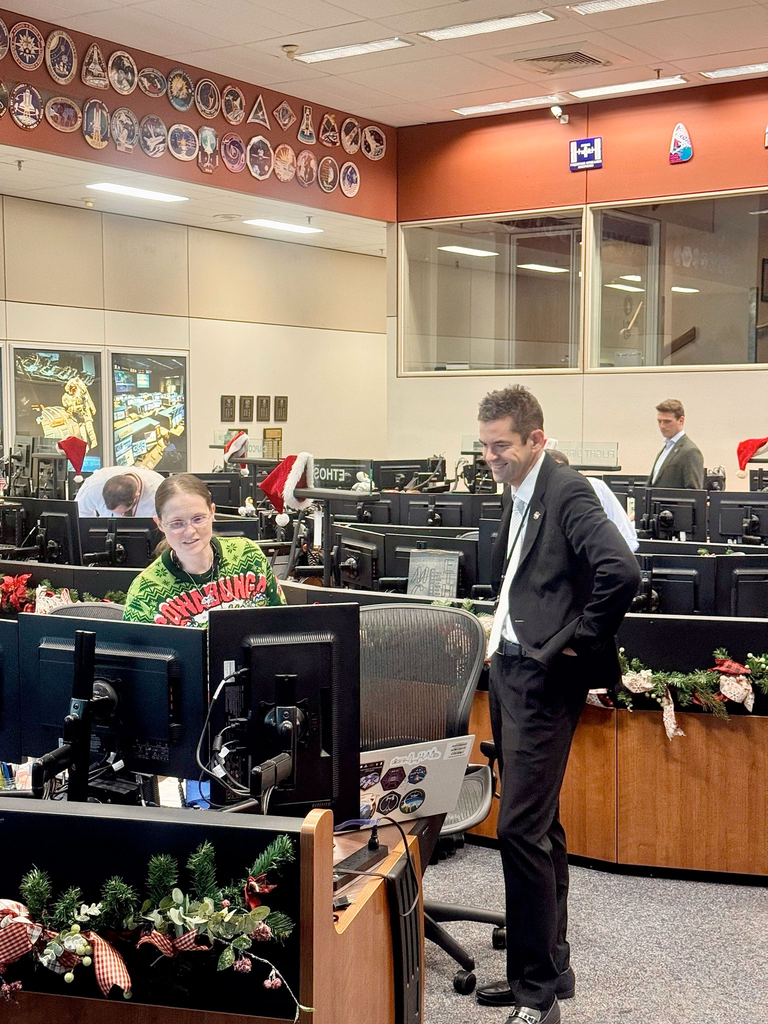 A very Merry Christmas surprise visit from NASA Administrator Jared Isaacman, who just stopped by Mission Control at Johnson Space Center to thank and celebrate with our flight ops team and the Expedition 74 crew!