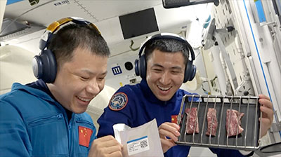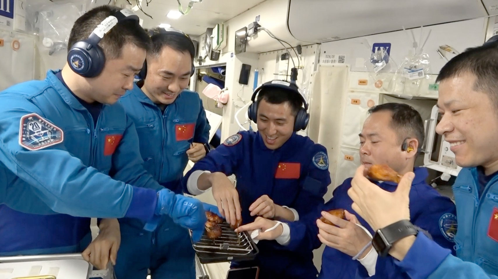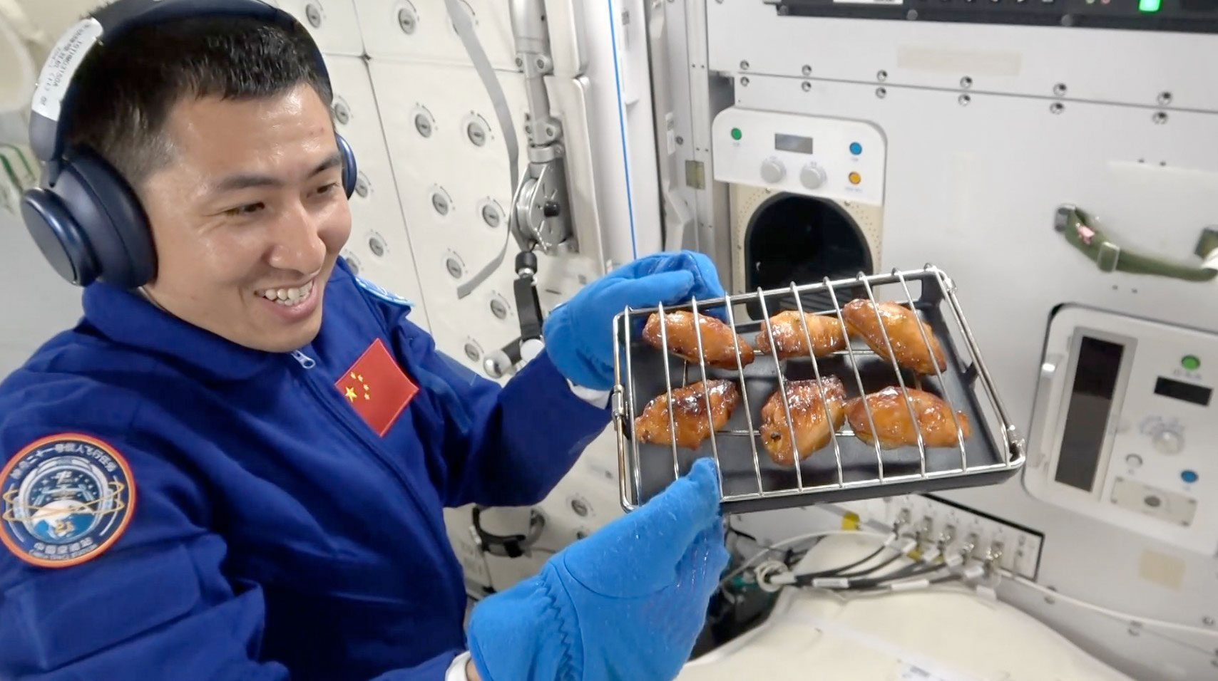 The Shenzhou 21 crew arrived at the Tiangong space station with a special treat to share with their Shenzhou 20 counterparts: grilled chicken wings and black pepper steak prepared using a microgravity oven.