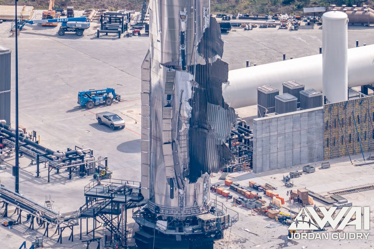Booster 18, the first Super Heavy V3, suffered an anomaly during gas system pressure testing that SpaceX was conducting in advance of structural proof testing (photos credit Jordan Guidry).