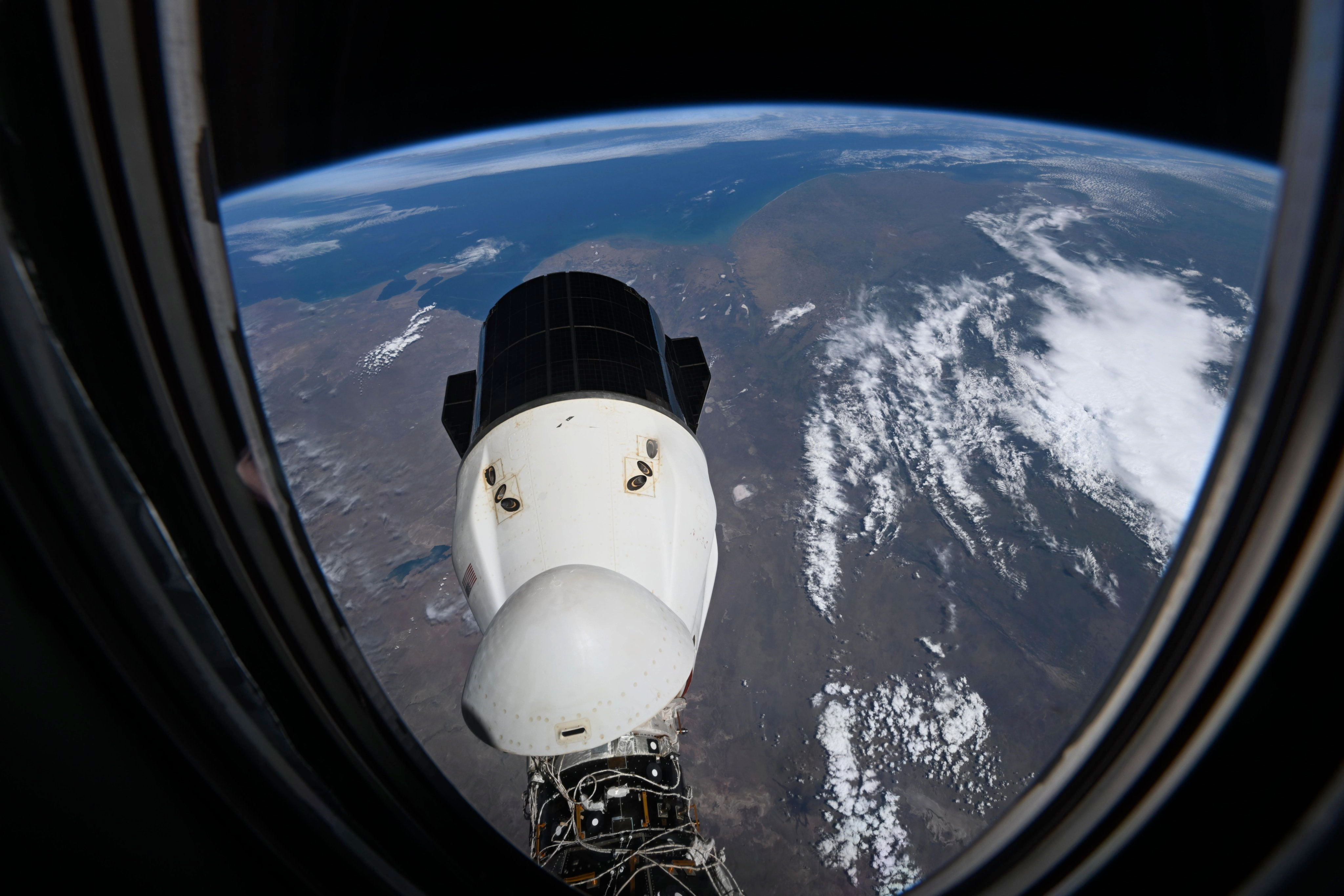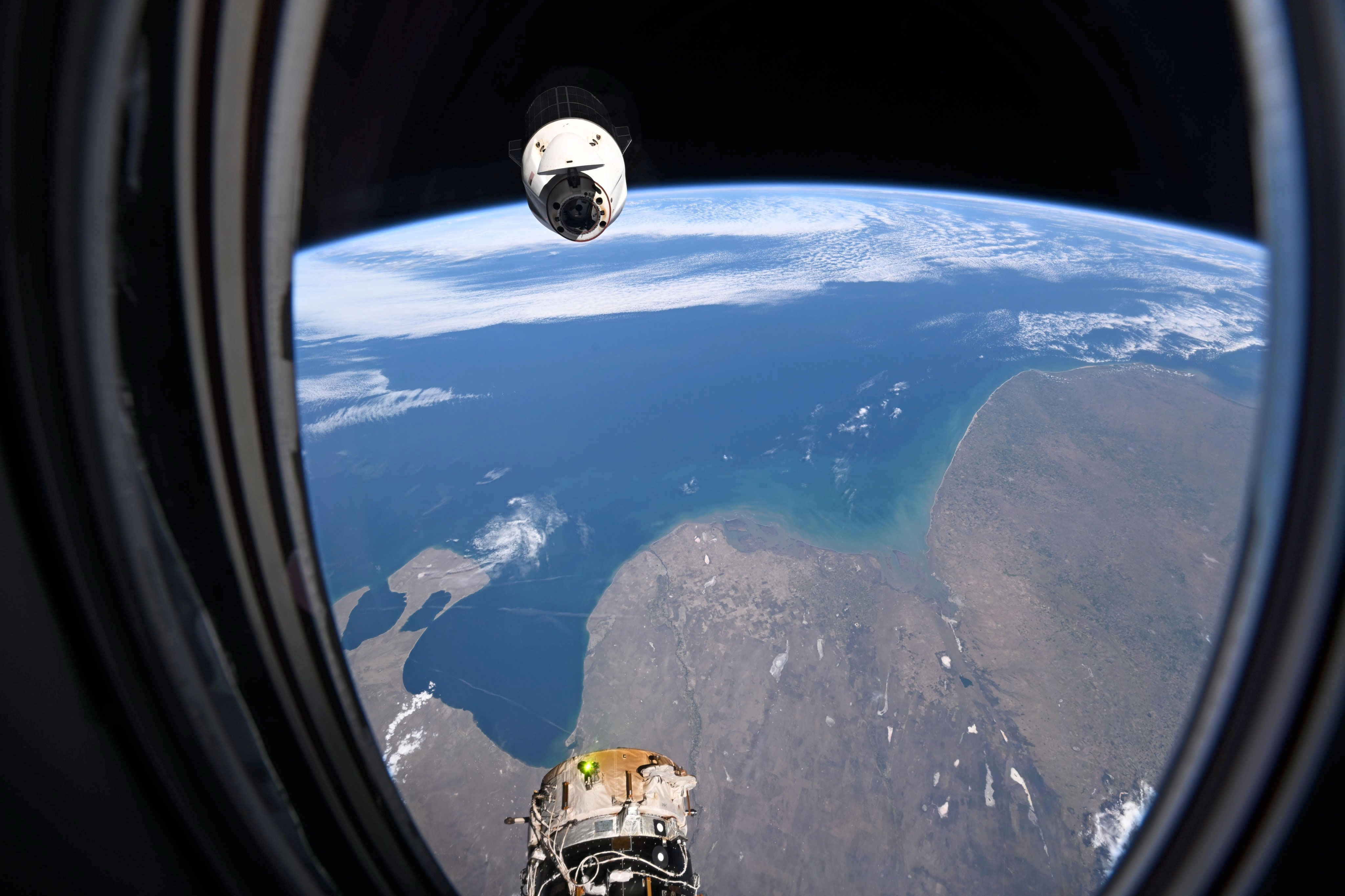 A view of a (cargo) Dragon from a (crew) Dragon. The SpaceX cargo Dragon 33 vehicle departed from the space station today. We've been busy packing it full of experiment samples, hardware, and items that need to be returned to Earth.