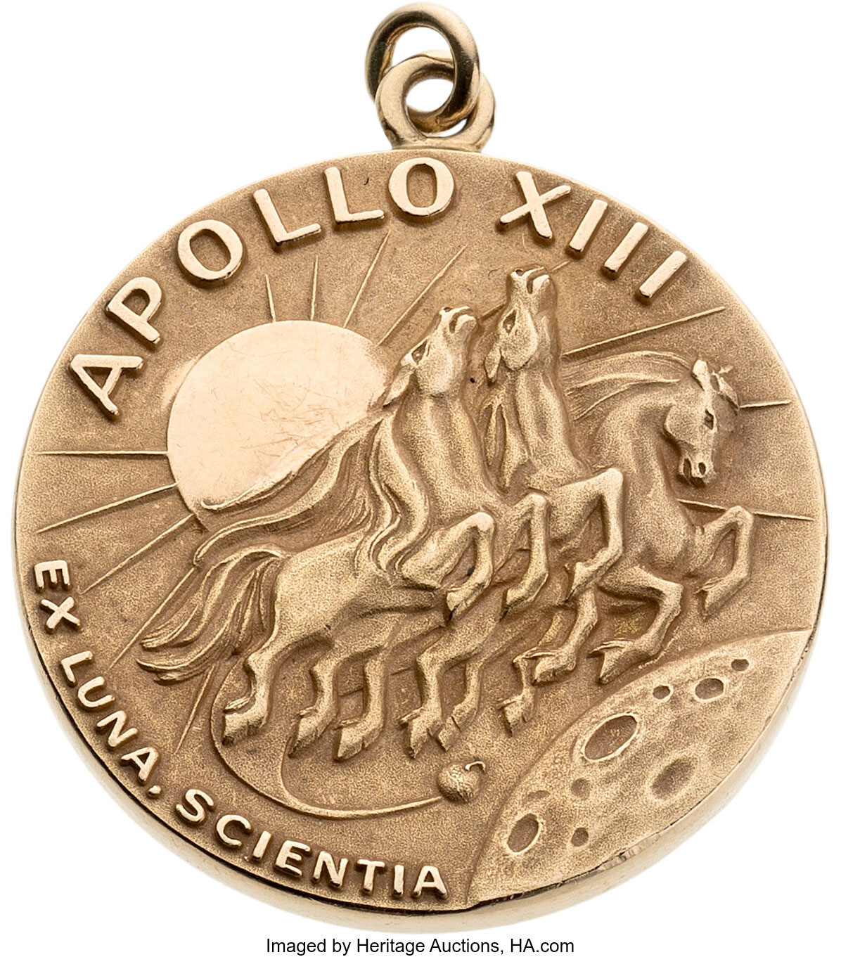 One of only five known Gold Robbins Medallions produced for the crew aboard the Apollo 13 mission will launch in to a new collection when it is sold in Heritage's Dec. 11-12 Space Exploration Signature Auction.