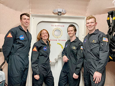 Ross Elder, Ellen Ellis, Matthew Montgomery, and James Spicer enter into the 1,700-square-foot Mars Dune Alpha habitat on Sunday, Oct. 19, to begin their mission. The team will live and work like astronauts for 378 days, concluding their mission on Oct. 31, 2026. Emily Phillips and Laura Marie serve as the mission's alternate crew members.