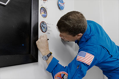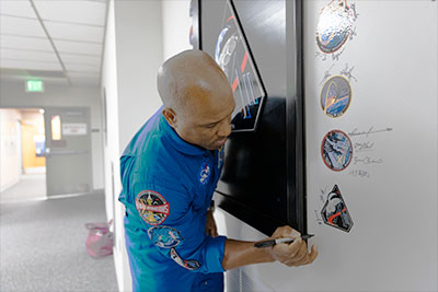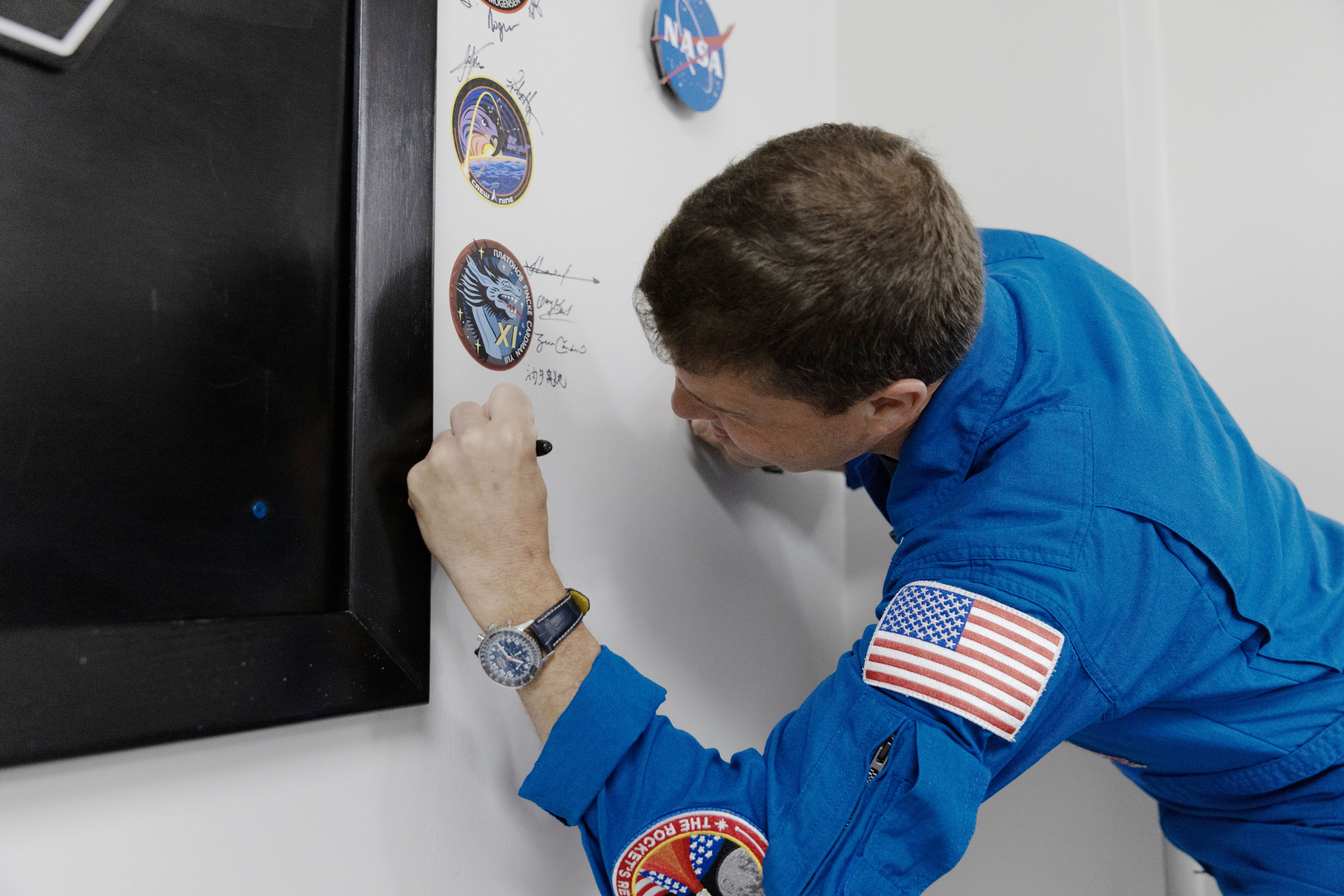 NASA photo release The Artemis II crew signed near their mission insignia inside the Astronaut Crew Quarters in the Neil A. Armstrong Operations and Checkout Building at NASA's Kennedy Space Center in Florida on Monday, March 30, 2026.